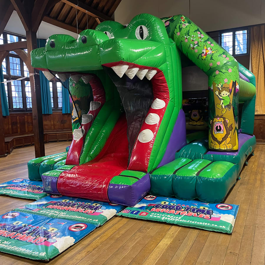 Bring the wild to your next birthday party with our Jungle Bouncy Castle With Slide. We love seeing kids faces light up as they bounce across, then slide out from the crocodile’s mouth — a perfect centrepiece for any jungle or safari theme birthday party. We only hire this bouncy castle for outdoor use on grass or indoors at one of our recommended venues we've already checked out, so you can relax knowing it’ll fit and be safe.