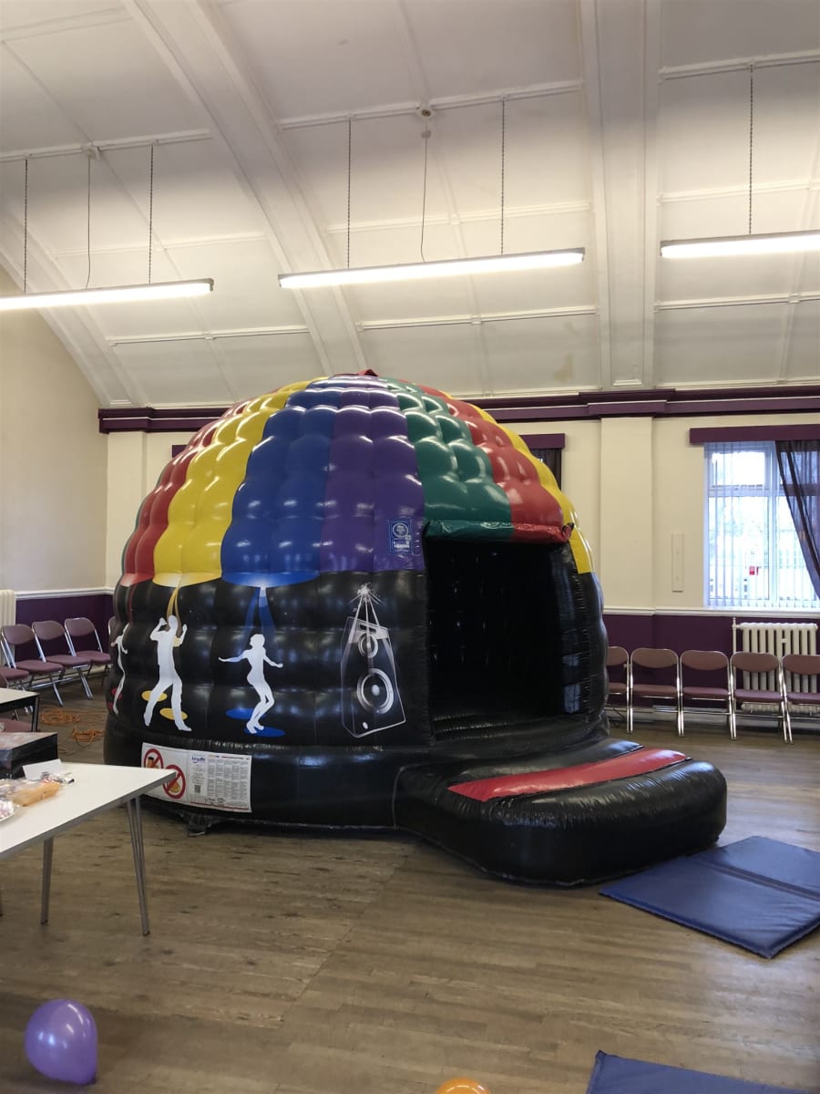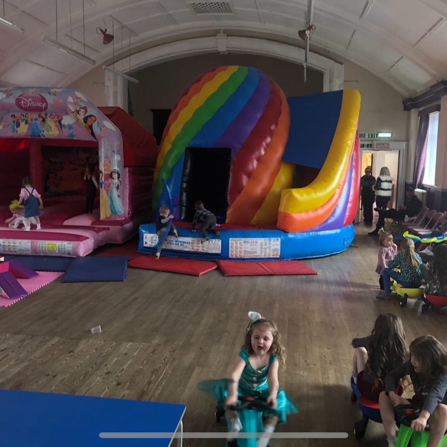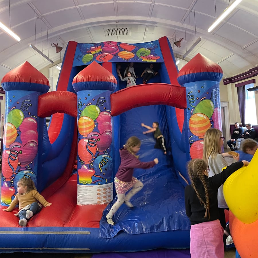 Conveniently situated on the front street next to the Junior school, our hall offers ample parking on both sides of the building, making it easy for your guests to arrive and enjoy the festivities. Inside, you'll find plenty of space to accommodate all your needs. In fact, our hall is large enough to accommodate all of our exciting bouncy castles, slides, disco domes, and even our thrilling mega slide. 🏰🎡